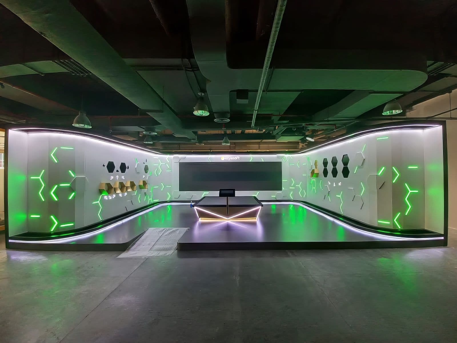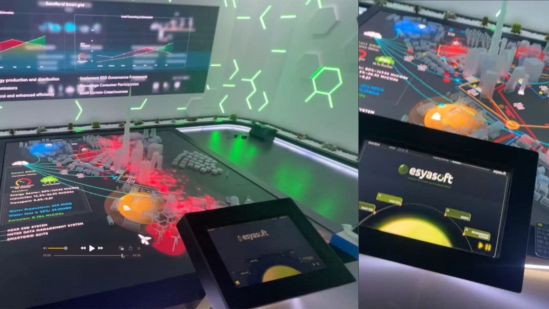 Static LED panels visualizing Esyasoft’s IoT infrastructure and energy distribution networks.